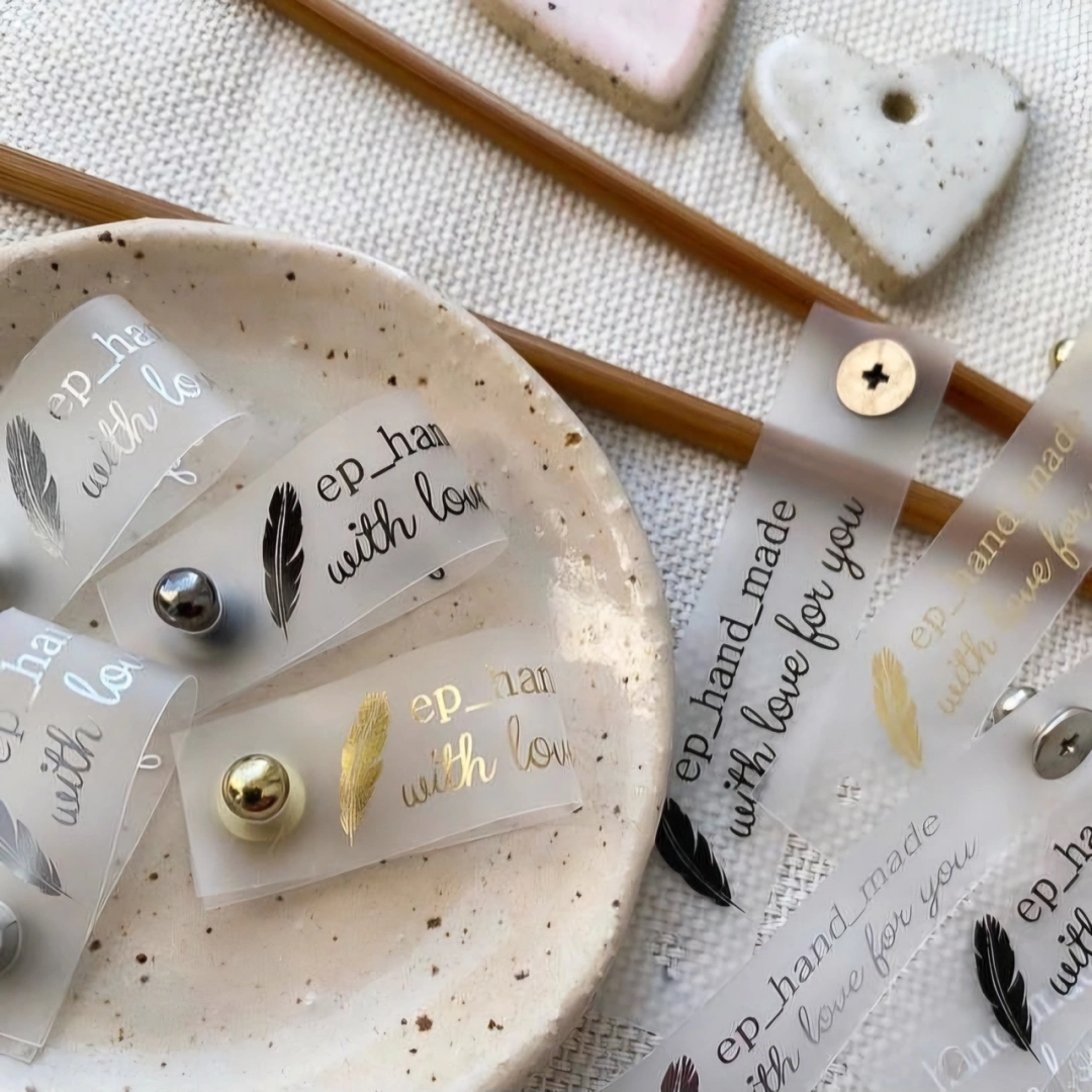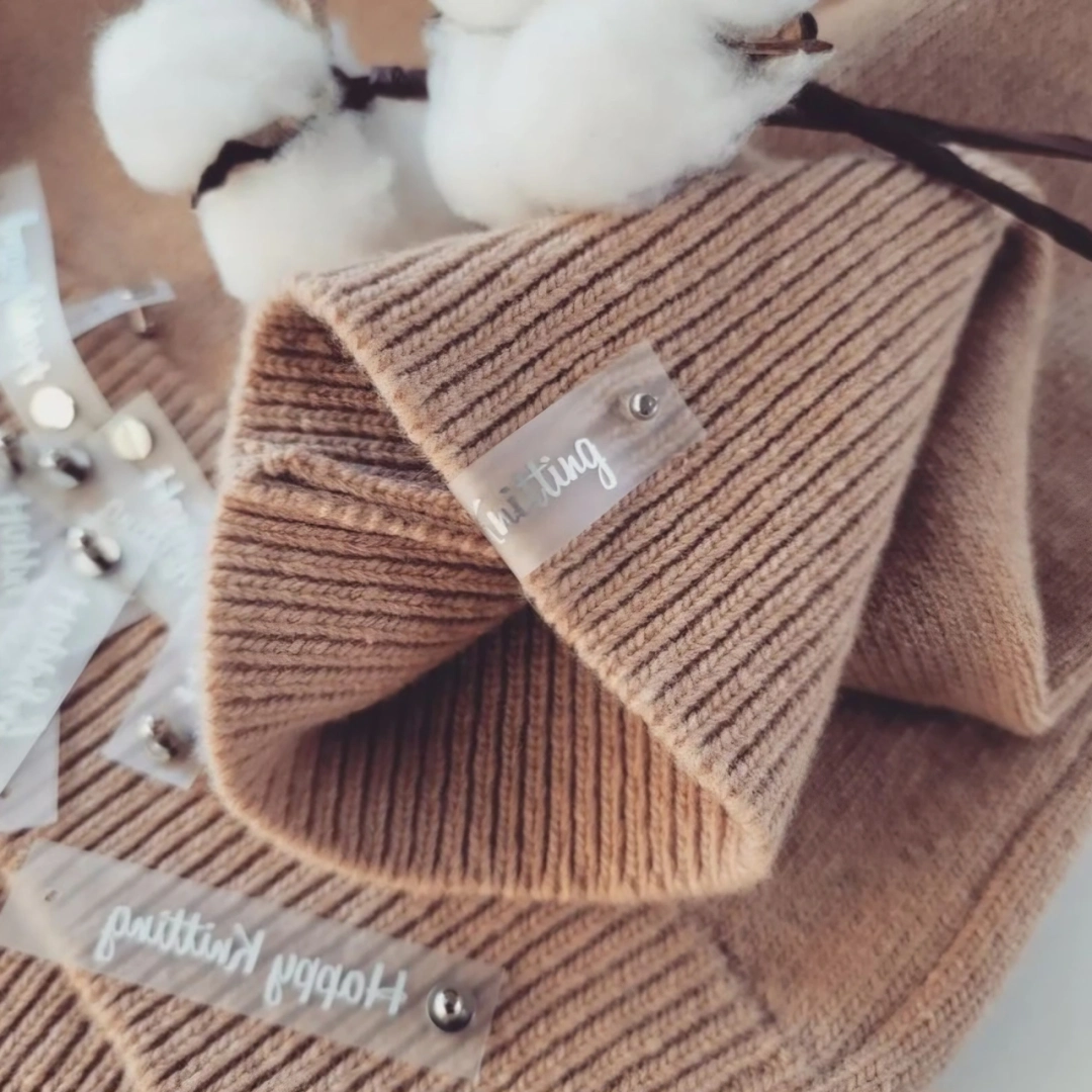 Силиконовые бирки мягкие, пластичные, полупрозрачные и приятные на ощупь. Это эластичный материал, который долго держит форму. Такая бирка будет интересно смотреться на изделиях не перегружая его. Силиконовые бирки на кобурной кнопке отлично подойдут для вязанных изделий: головные уборы, джемпера, варежки. Такие бирки используют в качестве именных или как составники/размерники.