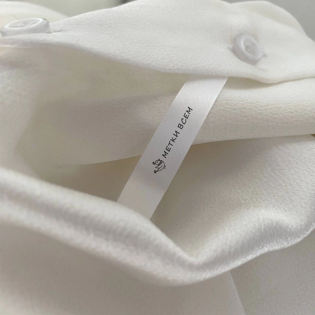 Сатиновые бирки – это самый популярный выбор, благодаря сочной печати и износоустойчивости. Они пластичные и мягкие на ощупь. Бирки из сатина можно использовать на внешней и внутренней стороне изделия в качестве именных бирок и составников/размерников. Они универсальны и подходят для всех видов изделий.