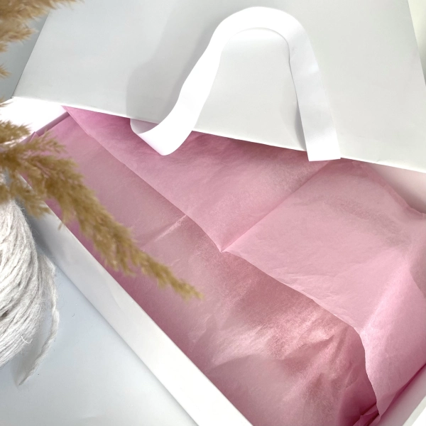Бумага тишью– тонкая полупрозрачная бумага с матовой поверхностью, приятная на ощупь, имеет характерное шелестение. Идеально подходит для упаковки брендовой одежды, обуви, сувениров, подарков, косметики и т.д.